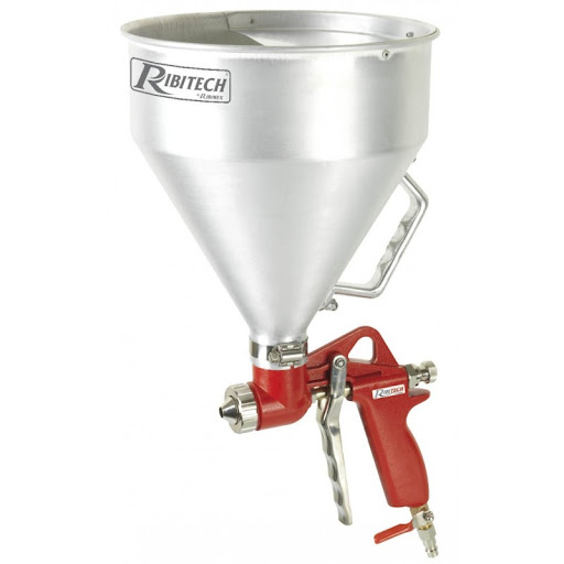 Pistolet de gravité avec godet de 5 litres pour la projection de produits pâteux comme le crépi, les enduits et la pâte à papier. Léger et simple d’utilisation, vous pourrez enduire vos murs et vos façades comme un véritable professionnel ! Grand rayon de recouvrement. Le pistolet est en métal, le godet d’une capacité de 5 litres est en aluminium. Le débit de pression est réglable.Le pistolet est équipé d’un robinet permettant la fermeture de l’arrivée de produit. Pour une utilisation optimale de cet outil il vous faudra l’adapter sur un compresseur bicylindre d’une capacité minimale de 100 litres et équipé d’un moteur de 2CV au minimum.